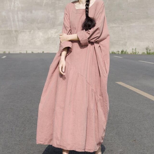 【送料無料】リネンワンピース ロング オーバーサイズ ナチュラル カジュアル 大人可愛い ゆったり 体型カバー お出かけ デート 普段使い デイリー 着回し OP-335IU