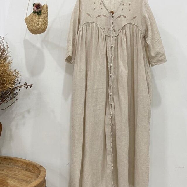 【送料無料】リネンワンピース ロング ナチュラル 大きいサイズ Vネック 大人可愛い カジュアル お出かけ デート 普段使い デイリー 着回し OP-336IU