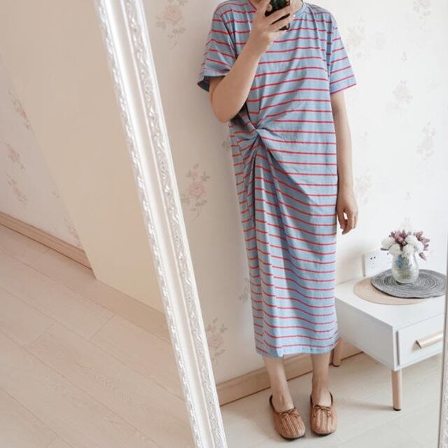 【送料無料】リネンワンピース ロング ナチュラル 大きいサイズ ゆったり ボーダー ツイスト 大人可愛い リラックス お出かけ デート 普段使い デイリー 着回し OP-341IU