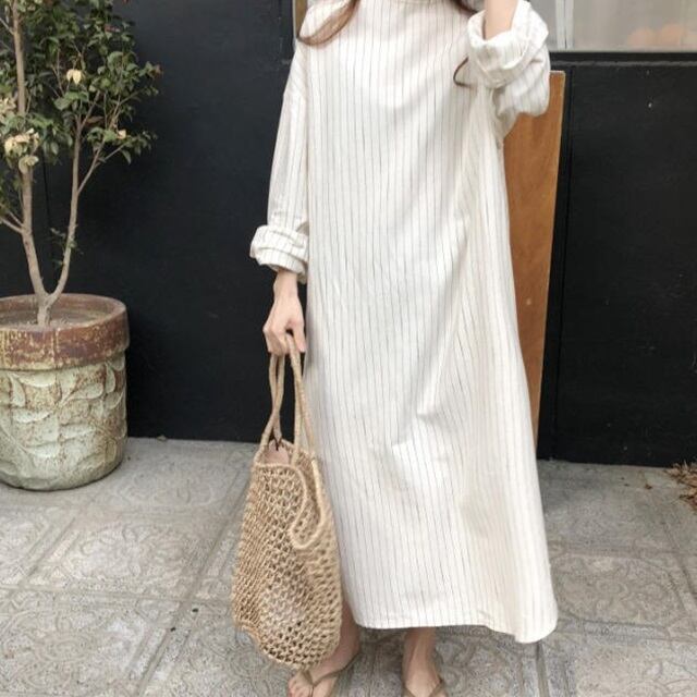 【送料無料】リネンワンピース コットン ロング ナチュラル 大きいサイズ ストライプ ゆったり カジュアル 大人可愛い おしゃれ お出かけ デート 普段使い デイリー 着回し OP-343IU