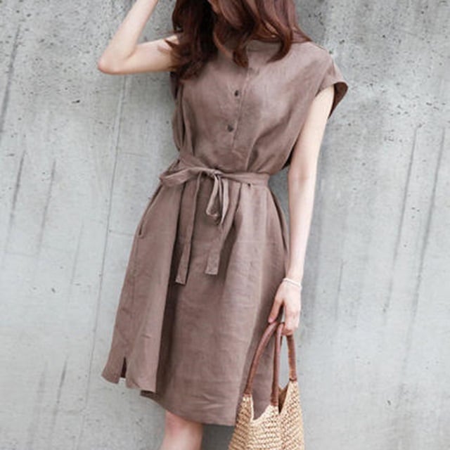 【送料無料リネンワンピース 膝丈 大きいサイズ ナチュラル ウエストリボン カジュアル 大人可愛い おしゃれ シンプル お出かけ デート 普段使い デイリー 通勤 オフィス 着回し OP-345IU