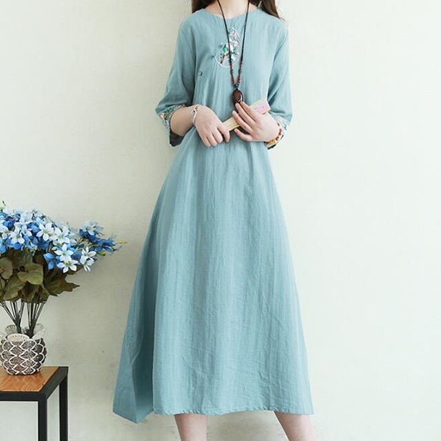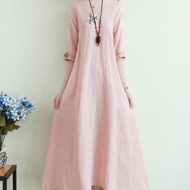 【送料無料】リネンワンピース ロング 大きいサイズ ナチュラル フレア 半袖 Aライン 大人可愛い カジュアル お出かけ デート 普段使い デイリー 着回し OP-346IU