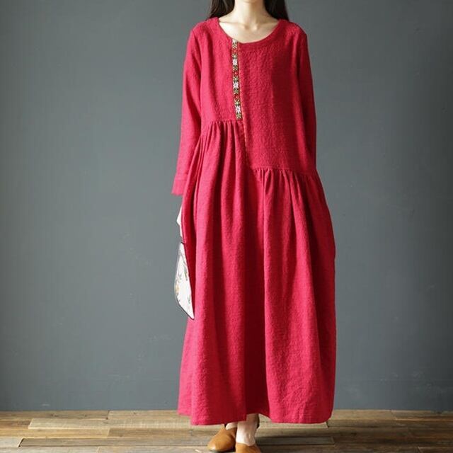 【送料無料】リネンワンピース ロング ナチュラル 大きいサイズ 大人可愛い カジュアル シンプル お出かけ デート 普段使い デイリー 着回し OP-356IU
