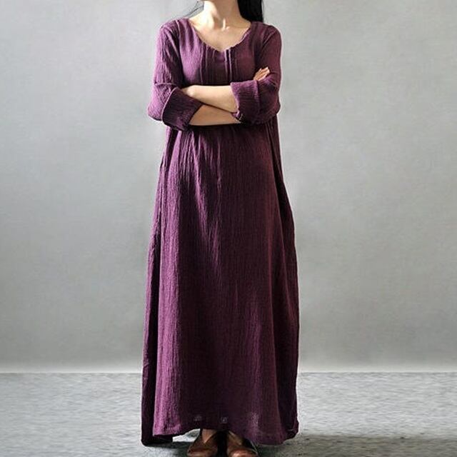 【送料無料】コットン リネンワンピース マキシ丈 ロング ナチュラル 大きいサイズ フレア ゆったり カジュアル シンプル ルーズ お出かけ デート 普段使い デイリー 着回し OP-391IU
