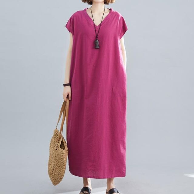 【送料無料】リネンワンピース ロング ナチュラル 大きいサイズ 大人可愛い カジュアル シンプル ベーシック お出かけ デート 普段使い デイリー 着回し OP-404IU