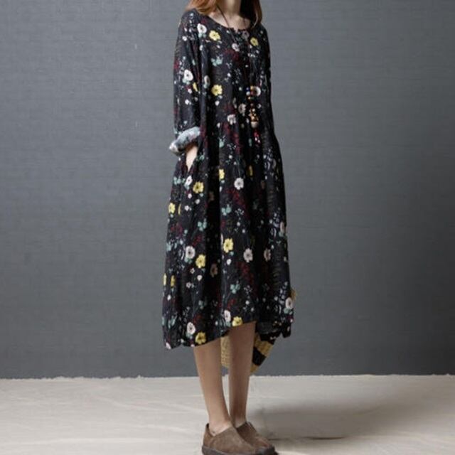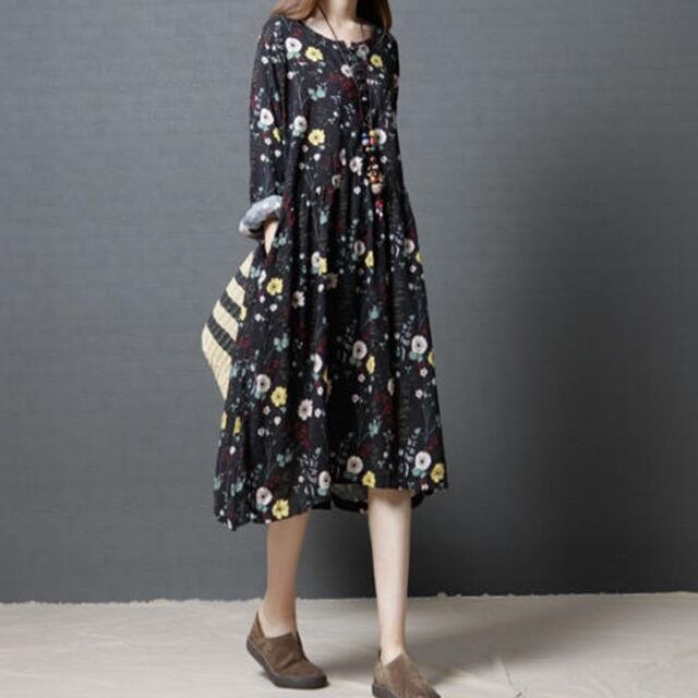 【送料無料】花柄ワンピース 膝丈 長袖 大きいサイズ フェミニン 大人可愛い おしゃれ ガーリー お出かけ デート 普段使い デイリー 着回し OP-406IU