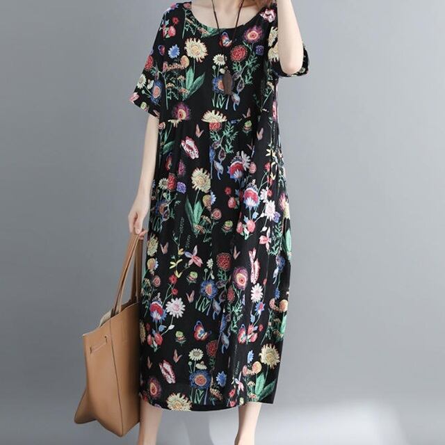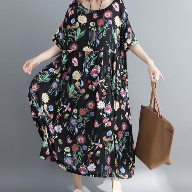 【送料無料】花柄ワンピースロング半袖ゆったりフェミニンおしゃれ大人可愛い森ガールお出かけデート普段使いデイリー着回しOP-408IU