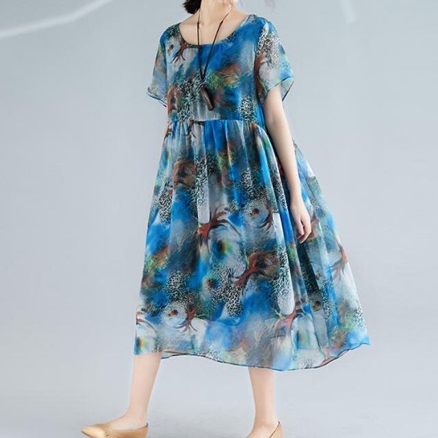 【送料無料】花柄ワンピース ロング ミモレ丈 半袖 大きいサイズ フェミニン レトロ 大人可愛い カジュアル お出かけ デート 普段使い デイリー 着回し OP-411IU