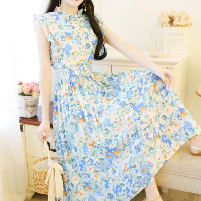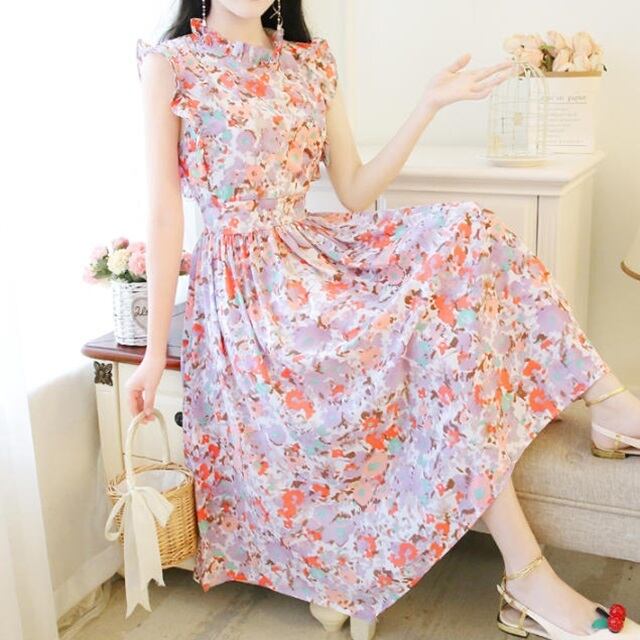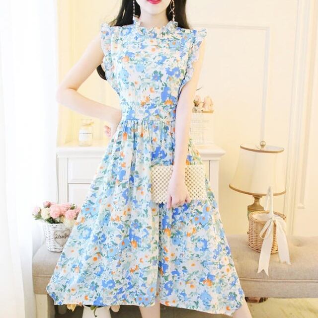 【送料無料】花柄ワンピース ロング ミモレ丈 ノースリーブ フェミニン キレイ目 上品 お出かけ デート 女子会 お呼ばれ 普段使い デイリー OP-413IU
