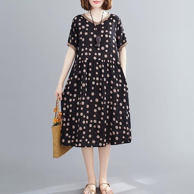 【送料無料】花柄ワンピース 大きいサイズ 半袖 ゆったり 大人可愛い レトロ カジュアル キレイ目 体型カバー お出かけ デート 普段使い デイリー 着回し OP-418IU