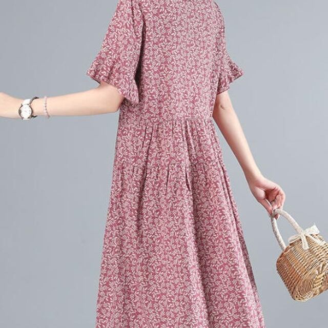 【送料無料】花柄ワンピース 膝丈 半袖 大きいサイズ フレア 大人可愛い 上品 ゆったり 体型カバー お出かけ デート 普段使い デイリー 着回し OP-428IU