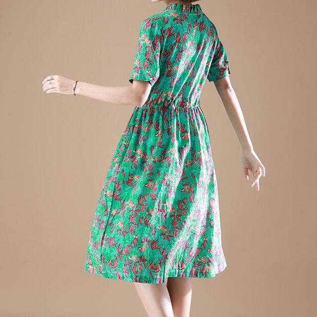 【送料無料】花柄ワンピース 膝丈 半袖 大きいサイズ ゆったり Aライン フレア 大人可愛い レトロ カジュアル キレイ目 上品 お出かけ デート 普段使い デイリー 着回し OP-440IU