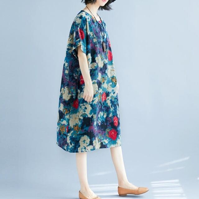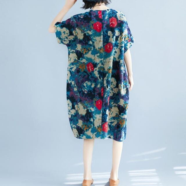 【送料無料】花柄ワンピース 半袖 大きいサイズ 膝丈 ゆったり レトロ 大人可愛い カジュアル おしゃれ お出かけ デート 普段使い デイリー 着回し OP-443IU