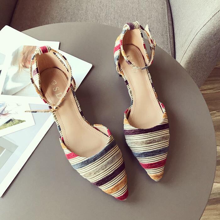 【送料無料】サンダル パンプス ストライプ柄 アンクルストラップ 大人可愛い オシャレ キュート ガーリー フェミニン カジュアル シンプル FW-046AU