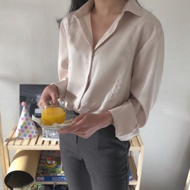 【送料無料】シャツ ブラウス トップス シャイニー 光沢 サテン きれいめ 上品 大人カジュアル 可愛い 長袖 ゆったり お出かけ デート 普段使い デイリー 着回し オフィス TP-265IU