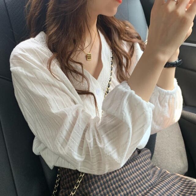 【送料無料】レースブラウス トップス Vネック 長袖 ナチュラル 大人可愛い 上品 きれいめ シンプル おしゃれ お出かけ デート 普段使い デイリー 着回し TP-268IU