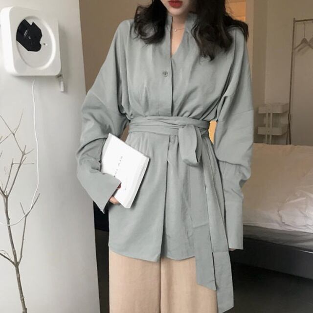 【送料無料】ブラウス シャツ トップス くすみカラー リボン ウエストリボン 長袖 無地 おしゃれ ゆったり カジュアル キレイ目 大人可愛い 上品 お出かけ デート 普段使い デイリー 着回し TP-273IU