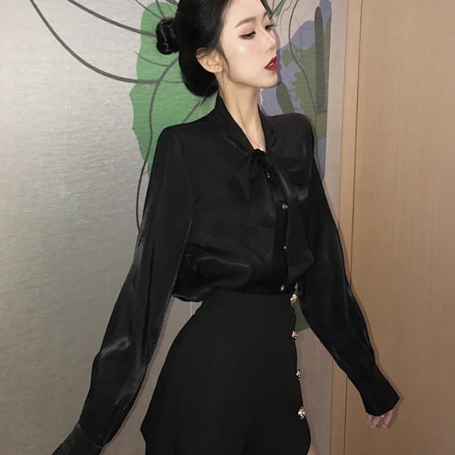 【送料無料】サテン シャツ ブラウス トップス ボウタイリボン 光沢 長袖 ゆったり エレガント キレイ目 大人可愛い 上品 お出かけ デート 普段使い デイリー 着回し パーティ TP-275IU