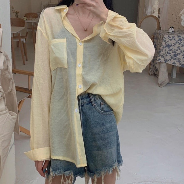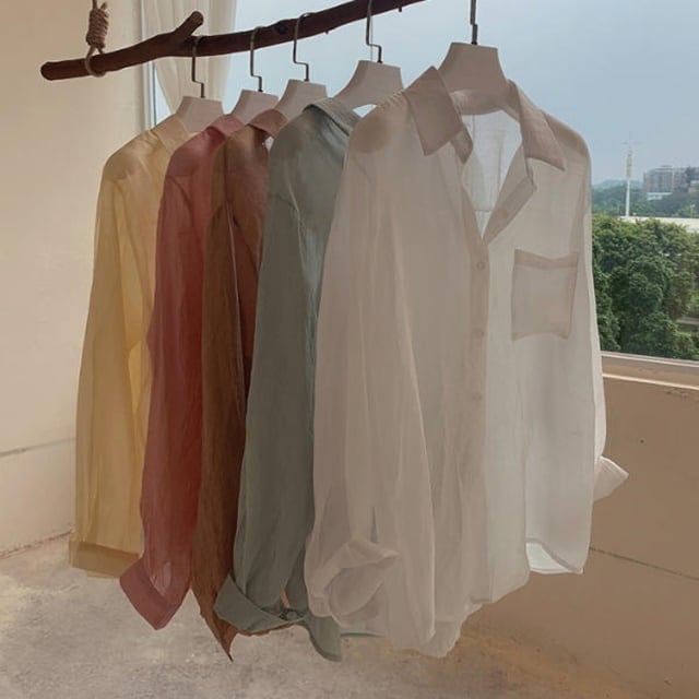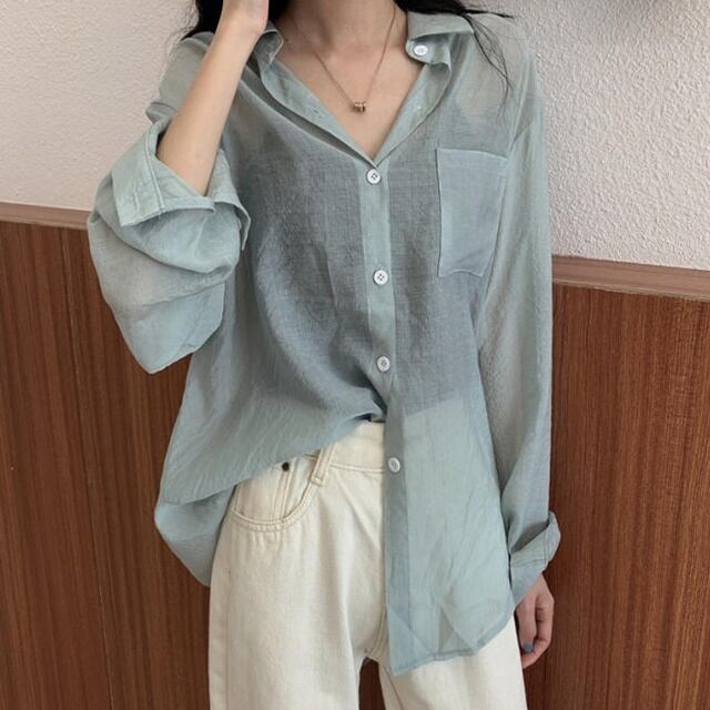 【送料無料】シアーシャツ ブラウス トップス シースルー 透け感 上品 長袖 ゆったり シンプル 大人可愛い カジュアル ベーシック お出かけ デート 普段使い デイリー 着回し TP-277IU