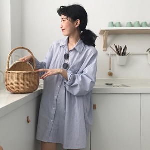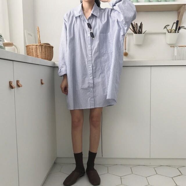 【送料無料】ストライプ シャツ トップス コットン 羽織 オーバーサイズ ゆったり 長袖 カジュアル 大人可愛い シンプル ベーシック お出かけ デート 普段使い デイリー 着回し TP-278IU