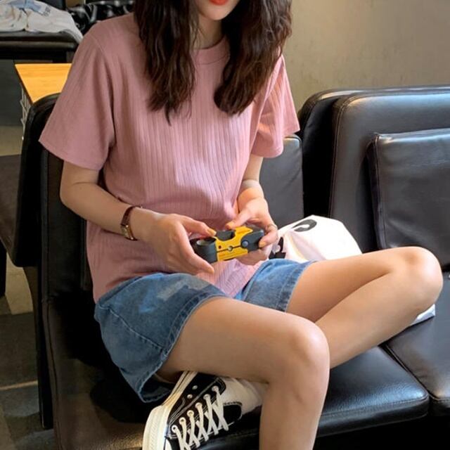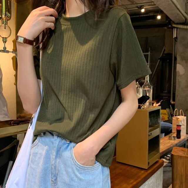 【送料無料】リブニット セーター トップス 半袖 ゆったり カジュアル 大人可愛い シンプル ベーシック お出かけ デート 普段使い デイリー 着回し TP-283IU