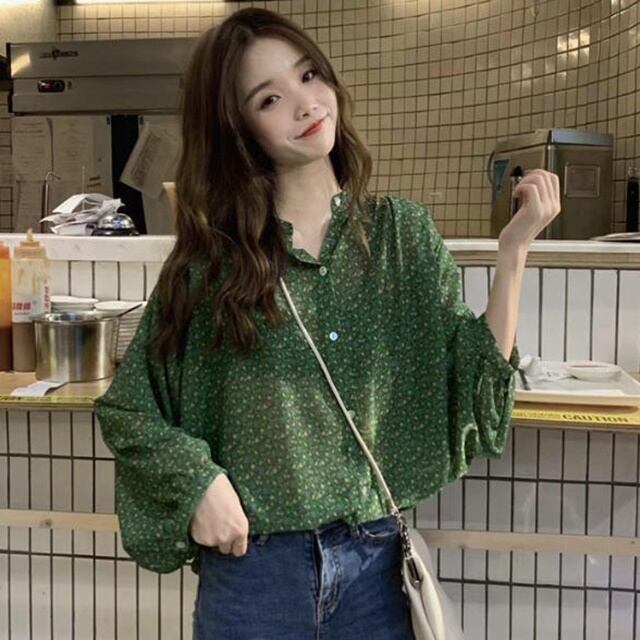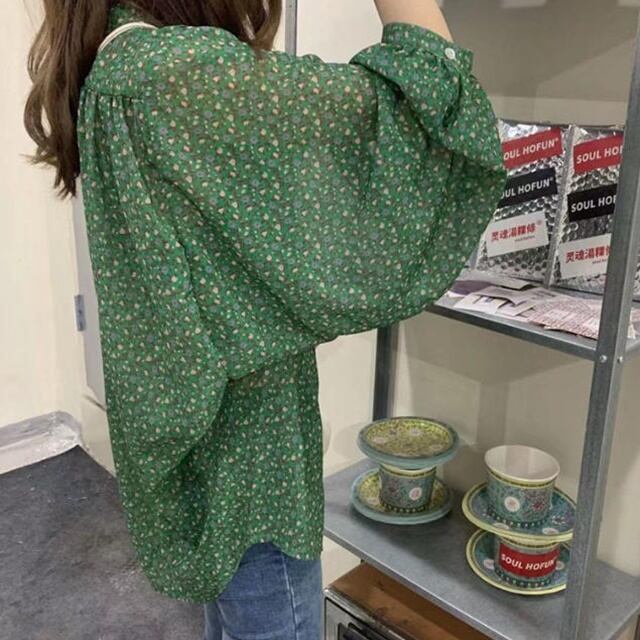 【送料無料】花柄ブラウス トップス シースルー ノーカラー 長袖 ゆったり レトロ カジュアル 大人可愛い おしゃれ お出かけ デート 普段使い デイリー 着回し TP-285IU