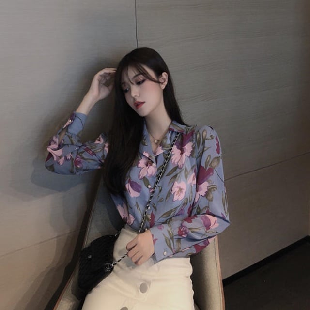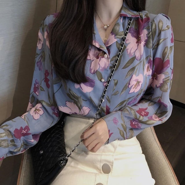 大きな花柄が目を惹く花柄ブラウス♪