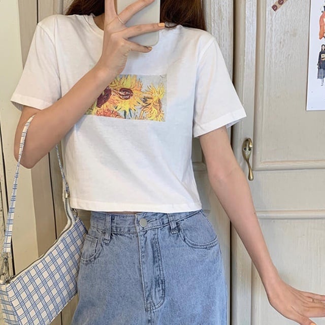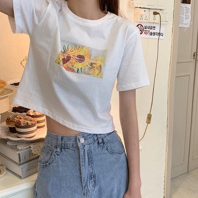 【送料無料】Tシャツ トップス プリント ロゴ ひまわり フラワー 半袖 ゆったり カジュアル レトロ 大人可愛い おしゃれ シンプル お出かけ デート 普段使い デイリー 着回し TP-289IU