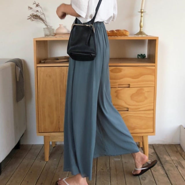 【送料無料】ワイドパンツ ハイウエスト ウエストゴム 体型カバー ゆったり 無地 シンプル 大人可愛い カジュアル ベーシック お出かけ デート 普段使い デイリー 着回し BM-053IU
