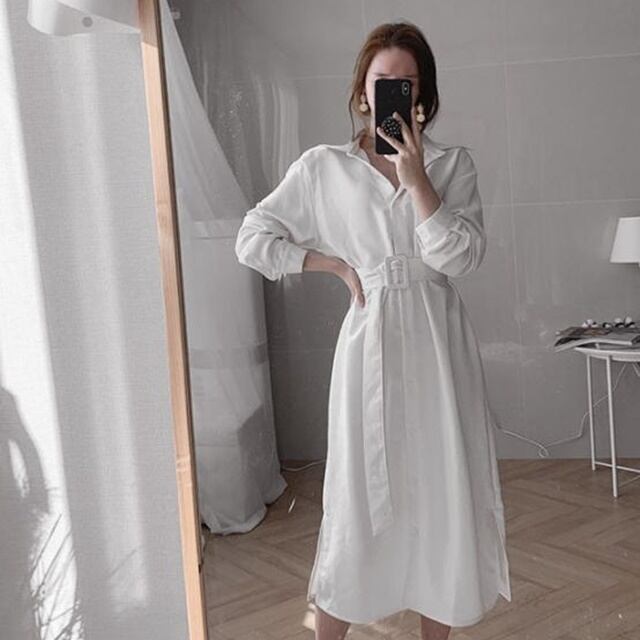 【送料無料】シャツワンピース ロング フレア Aライン Vネック カジュアル 大人可愛い シンプル ベーシック お出かけ デート 普段使い デイリー 着回し OP-458IU