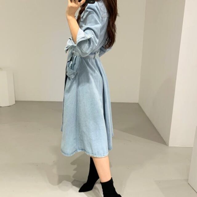 【送料無料】デニムワンピース ロング ミモレ丈 フレア ベルト付き Aライン スクエアネック カジュアル シンプル 大人可愛い ベーシック きれいめ 上品 お出かけ デート 普段使い デイリー OP-460IU