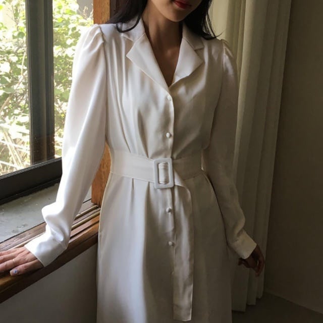 【送料無料】シャツワンピース ロング Vネック マーメイド フレア 長袖 ゆったり 無地 大人可愛い きれいめ 上品 エレガント フェミニン お出かけ デート 普段使い デイリー フォーマル OP-463IU