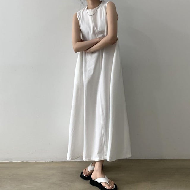 【送料無料】ノースリーブワンピース ロング マキシ丈 フレア 無地 オーバーサイズ ゆったり カジュアル ベーシック 大人可愛い シンプル お出かけ デート 普段使い デイリー 着回し OP-472IU