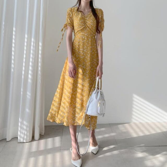 【送料無料】花柄ワンピース ロング シフォン ハイウエスト フレア Aライン 半袖 レトロ きれいめ 上品 大人可愛い フェミニン お出かけ デート 普段使い デイリー OP-477IU