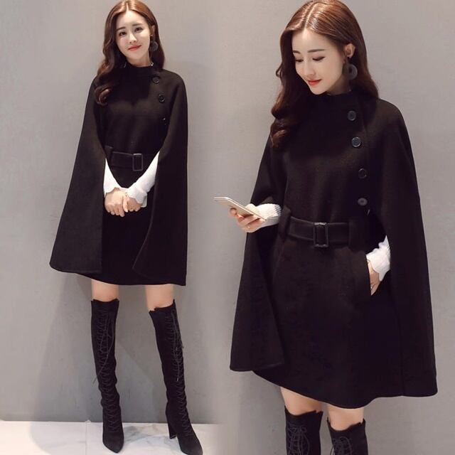 オールブラックのシックなポンチョコート♪
