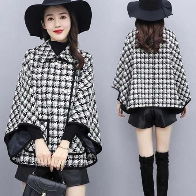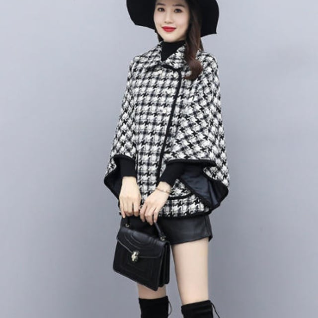 【送料無料】ポンチョコート マント アウター チェック柄 ステンカラー ゆったり カジュアル 大人可愛い おしゃれ レトロ エレガント 上品 きれいめ お出かけ デート 普段使い デイリー 着回し 通勤 OT-148IU