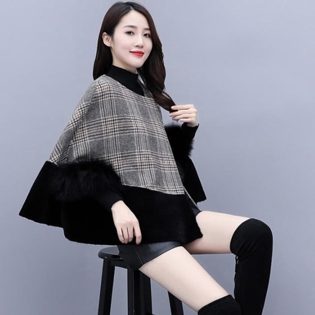 【送料無料】ポンチョコート マント アウター 羽織 ファー チェック柄 ゆったり きれいめ 上品 エレガント フォーマル 通勤 オフィスカジュアル 大人可愛い おしゃれ レトロ お出かけ デート 普段使い デイリー 着回し OT-158IU
