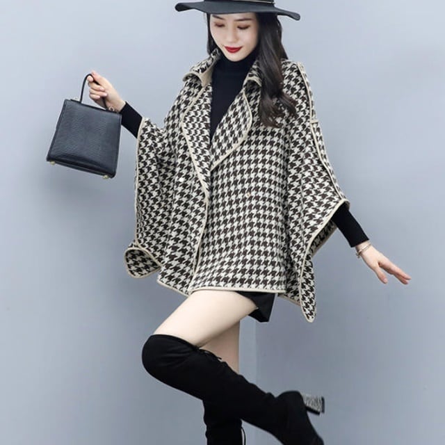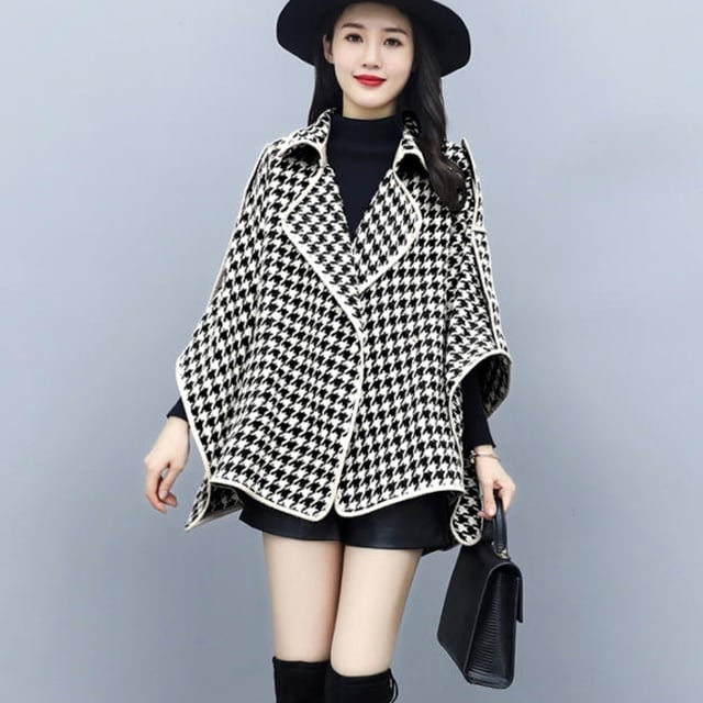 【送料無料】ポンチョコート ケープ マント アウター 羽織 千鳥格子 ゆったり きれいめ エレガント 上品 シンプル ベーシック お出かけ デート 普段使い デイリー 着回し 通勤 オフィスカジュアルOT-181IU