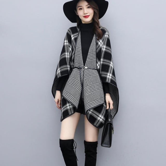 【送料無料】ポンチョコート ケープ マント アウター 羽織 チェック柄 ゆったり きれいめ エレガント 上品 シンプル ベーシック お出かけ デート 普段使い デイリー 着回し 通勤 オフィスカジュアル OT-183IU