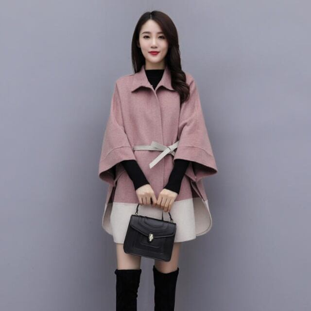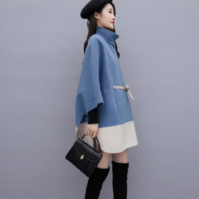 【送料無料】ポンチョコート ケープ マント アウター 羽織 バイカラー リボン ゆったり きれいめ エレガント 上品 シンプル ベーシック お出かけ デート 普段使い デイリー 着回し 通勤 オフィスカジュアル OT-193IU