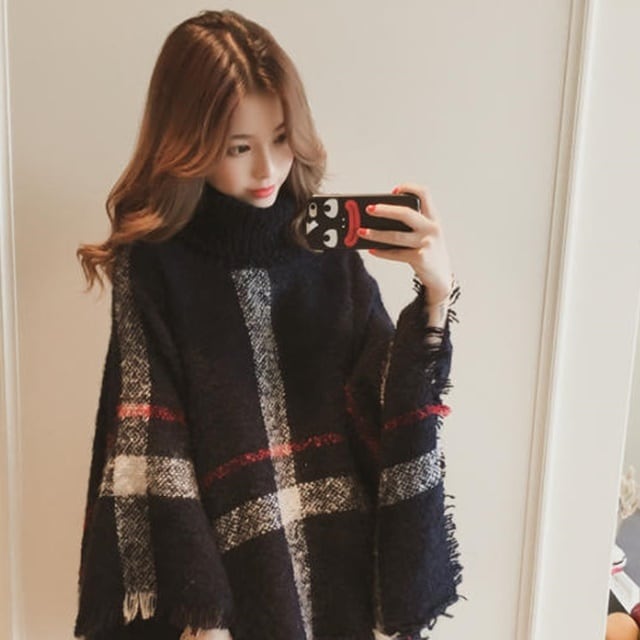 【送料無料】ポンチョコート ケープ マント アウター ニット 羽織 チェック柄 ハイネック ゆったり きれいめ エレガント 上品 シンプル ベーシック お出かけ デート 普段使い デイリー 着回し 通勤 オフィスカジュアル OT-209IU