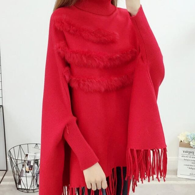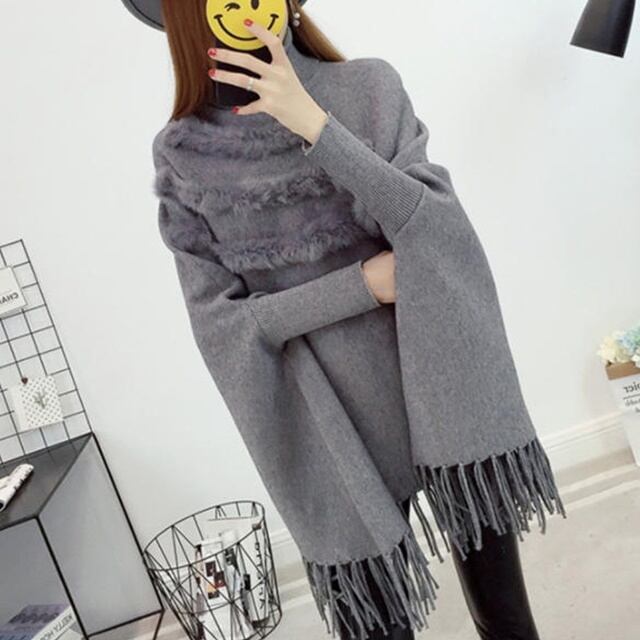 【送料無料】ポンチョコート ケープ マント アウター 羽織 トップス ファー フリンジ ハイネック 無地 ゆったり きれいめ エレガント 上品 シンプル ベーシック お出かけ デート 普段使い デイリー 着回し 通勤 カジュアル OT-226IU