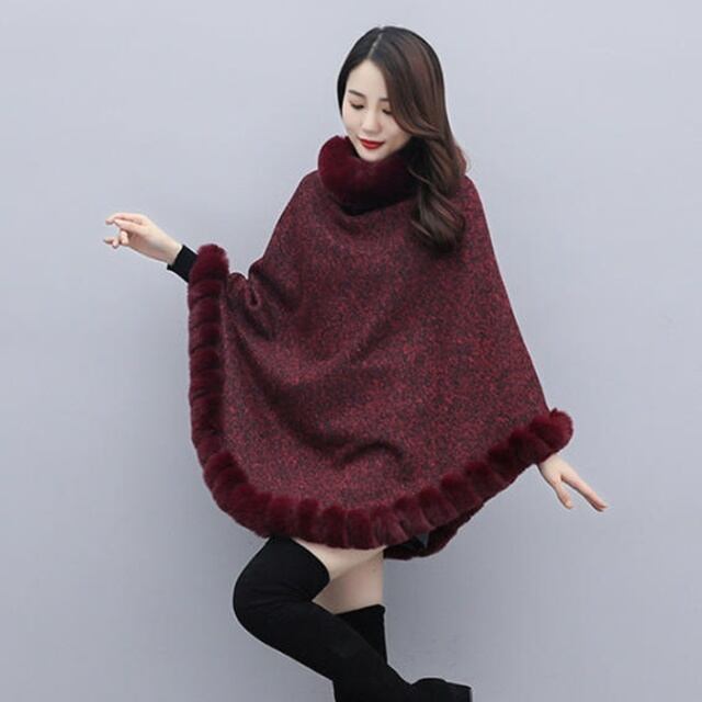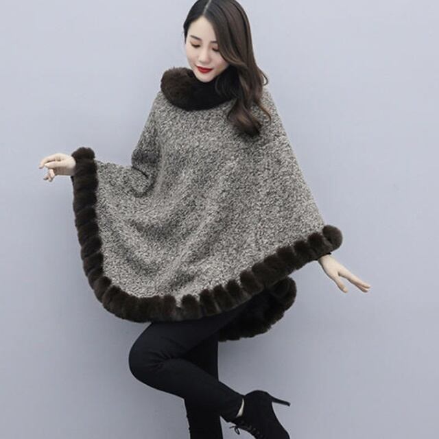 ファー付きで秋冬にぴったりなポンチョコート♪