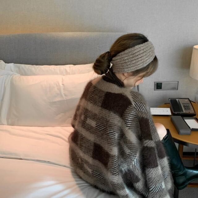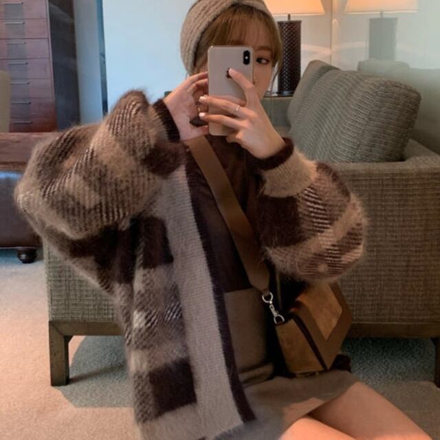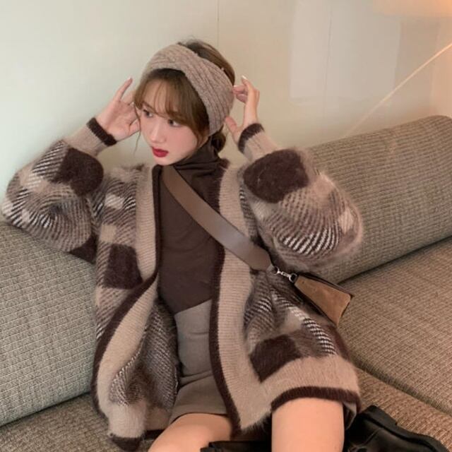 【送料無料】ニットカーディガン アウター 羽織 モヘア チェック柄 長袖 ゆったり レトロ 大人可愛い フェミニン カジュアル おしゃれ お出かけ デート 普段使い デイリー 着回し TO-298IU
