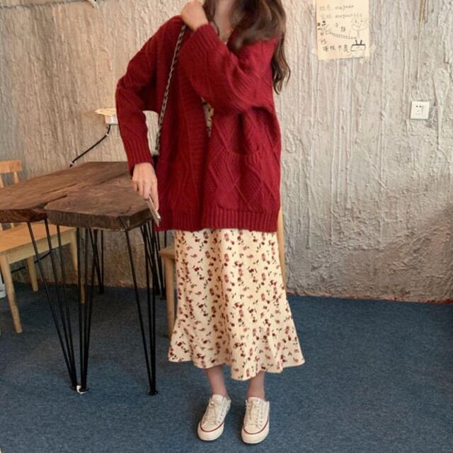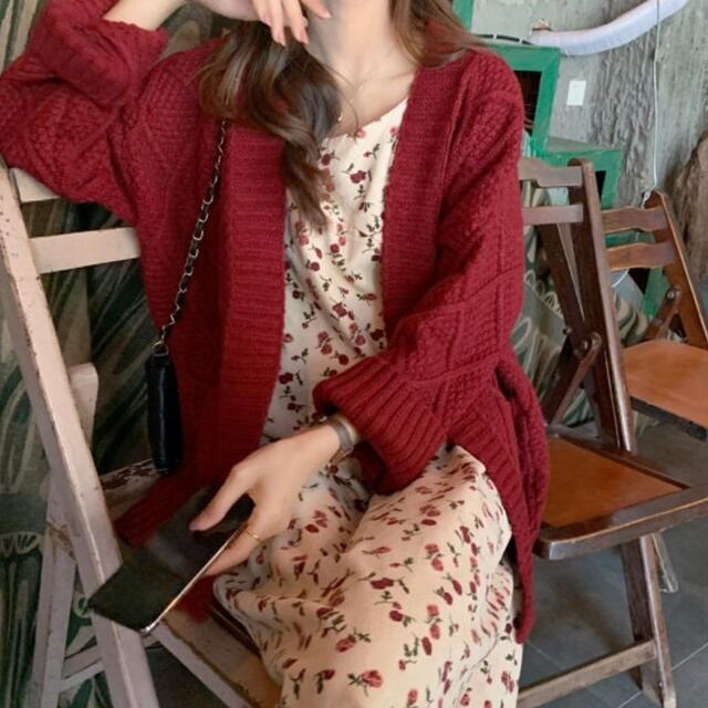 レッドカラーで秋冬に映えるニットカーディガン♪