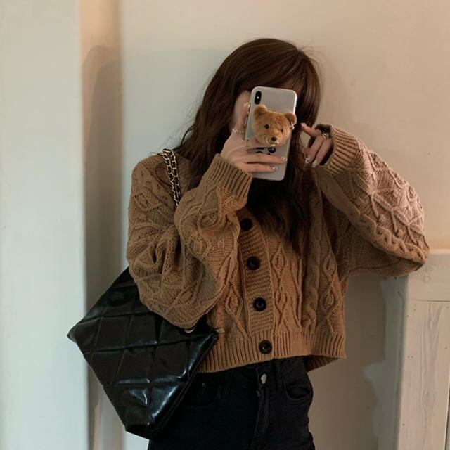 【送料無料】ニットカーディガン トップス 羽織 ケーブル編み ショート丈 ゆったり 長袖 大人可愛い カジュアル シンプル ベーシック お出かけ デート 普段使い デイリー 着回し TO-340IU