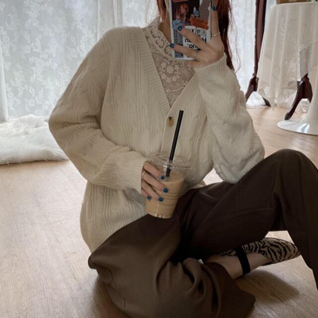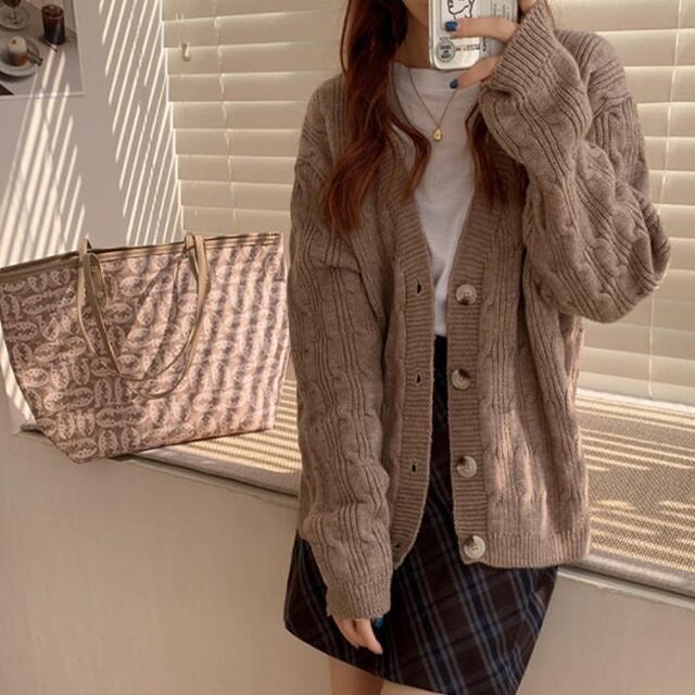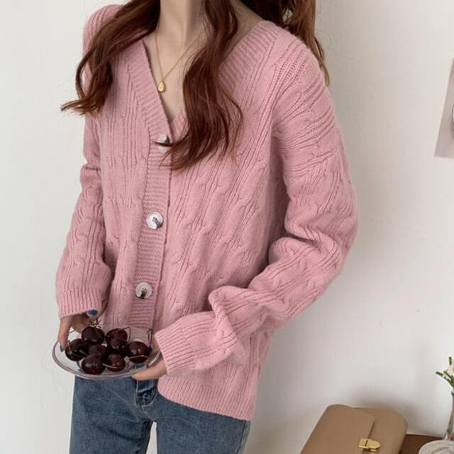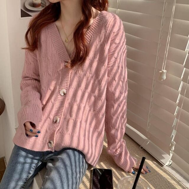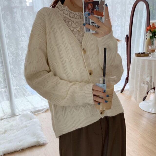 【送料無料】ニットカーディガン トップス 羽織 ケーブル編み Vネック ゆったり 長袖 大人可愛い フェミニン カジュアル おしゃれ お出かけ デート 普段使い デイリー 着回し TO-346IU
