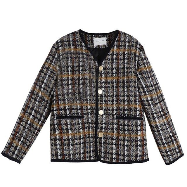 【送料無料】ノーカラージャケット アウター 羽織 チェック柄 長袖 ゆったり 無地 シンプル 大人可愛い カジュアル ベーシック レトロ おしゃれ お出かけ デート 普段使い デイリー 着回し 通勤 OT-310IU