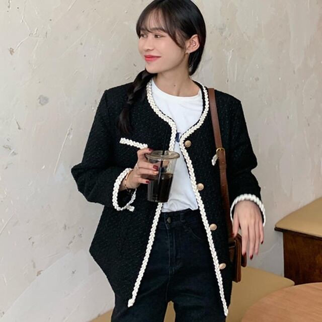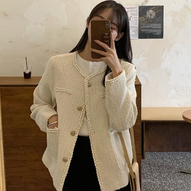 【送料無料】ノーカラージャケット アウター 羽織 ツイード 長袖 ゆったり きれいめ 上品 エレガント 無地 シンプル 大人可愛い カジュアル ベーシック お出かけ デート 普段使い デイリー 着回し 通勤 OT-321IU