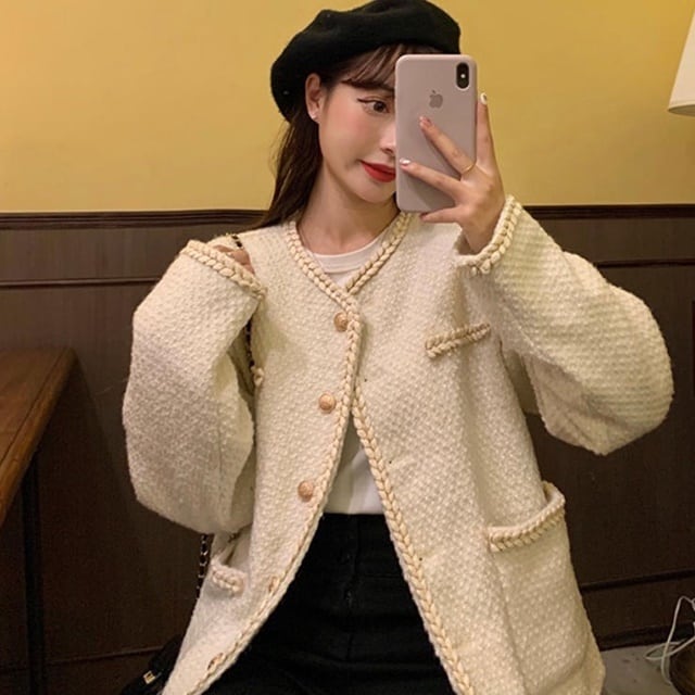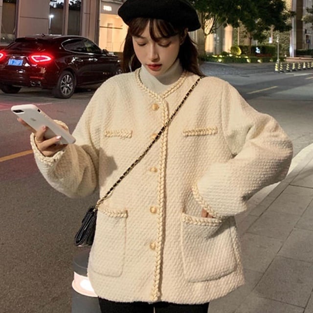 秋冬らしい暖かみのあるノーカラージャケット♪